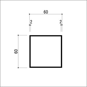 アルミ等辺角パイプ 2.0x60x60x4000mm(2M+2M) アルマイトシルバー