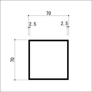 アルミ等辺角パイプ 2.5x70x70x4000mm(2M+2M) アルマイトシルバー
