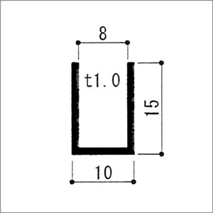 e-kanamono アルミチャンネル 1.0x10(内寸8)x15x3640mm(1820mm+1820mm) アルマイトシルバー