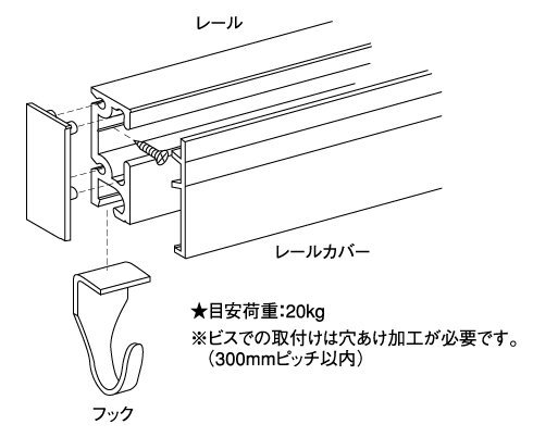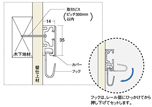 ●商品名:HPI-W 壁面用ピクチャーレール 3000mm ●品番:HPI-W180-3000 ●寸法:14mm x 35mm ●長さ:3000mm ●材質:本体 アルミ押出型材 カバー及びキャップ 樹脂 ●表面:本体 B2アルマイト(シルバー) カバー及びキャップ ホワイト 設置方法 壁面設置タイプ 目安荷重 20kg 注意事項 ※上記許容荷重は300mm以内のピッチでビス固定した場合のレール1本あたりの許容荷重となります ※上記荷重はレール自体の強度であり、ビス及び取付部の強度は考慮されておりません ※レール端部は強度保持のため、端から50mm以内にビス固定してください 推奨ビス 4mm~5mm ※ビスは付属されておりません ●付属品:ピクチャーレールx1 レールキャップx2個(左右) レールカバーx1 専用フック HPD-W180 ※レールフックはセットに含まれておりません ●備考:・ピクチャーレールには、予めビス穴は明いておりませんので、 取付の際にはビス穴を明けていただく必要がございます ・取付には壁面などの強度を確認してご使用ください、強度不足の場合には必ず補強をしてください ●配送の都合により、カットして分割での発送となります。 ※個人宅への配送以外はカット無しでの発送も可能です。
