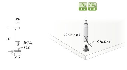 ●商品名:ワイヤーロック ロック吊り金具(ワイヤー逃し) ●品番:RWL-332M ●材質:真鍮製 ●表面仕上:パールニッケルメッキ 対応ワイヤー 1.0~1.2mmワイヤー対応 (※ワイヤー逃し可) 許容荷重 1.0mmワイヤー 8kg以内 1.2mmワイヤー 10kg以内 ●付属品:この商品に付属品はございません ・荷重をかける前に、ワイヤーをロックに十分挿入している事を確認してください ・荷重の不均衡や揺れ等で思わぬ負荷がかかる事があります、許容荷重には余裕をもってください