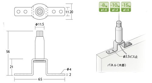 ●商品名:ワイヤーロック ロック吊り金具 ●品番:RWL-347A ●材質:真鍮・スチール製 ●表面仕上:パールニッケルメッキ 対応ワイヤー 1.0~2.5mmワイヤー対応 (※ワイヤー貫通可) 許容荷重 1.0mmワイヤー 8kg以内 1.2mmワイヤー 10kg以内 1.5mmワイヤー 15kg以内 ●付属品:ワイヤーロックと吊り金具が一体型になった商品です ・荷重をかける前に、ワイヤーをロックに十分挿入している事を確認してください ・荷重の不均衡や揺れ等で思わぬ負荷がかかる事があります、許容荷重には余裕をもってください