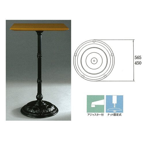 ●商品名:テーブル脚 アルミ鋳物 R-CH-450 ●品番:HYS-RCH450-965-44O ●ベースサイズ:450mmφ ※アジャスター付 ●高さ:965mm ※高さの変更は出来ません ●受座:290φ ●パイプ材質仕上:アルミ製 黒半艶塗装(屋外用) ●ベース材質仕上:アルミ鋳物ベース 黒半艶塗装(屋外用) ●付属品:この商品に付属品はございません(※取付ビスは付属しておりません) ●組立方式:こちらの商品は組み立てて発送いたします。 備考