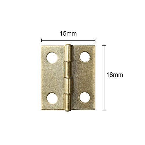 50個のキャビネット用蝶番、 開いたときの蝶番サイズ(長さx幅)は、約18 x 15 mm。各蝶番に4個の取り付け穴があり、ミニネジがぴったり。200個の蝶番交換用ネジ、長さは5 mm。蝶番とネジは真鍮コーティングされた高品質の鉄で作られ、耐食・防サビです。