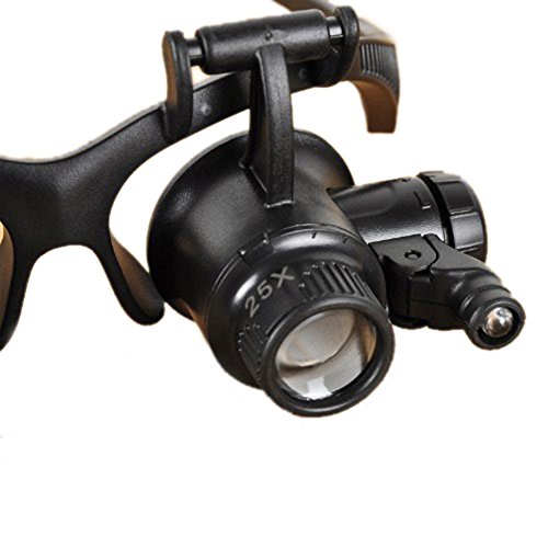 eHarbour LED 付ヘッドルーペ 眼鏡式 拡大鏡 10倍 15倍 20倍 25倍