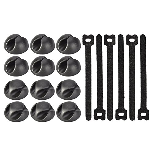 eLander Cable Clips Holders & Reusable Cable Ties [12+6 Pack], Cord Management System for Computer, Charging or Mouse Cord, Black [並行輸入品]