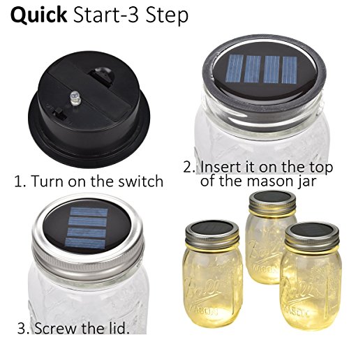 - ✓ Solar Mason Jar Lids: can be added to most standard glass mason jars, put the jar to anywhere and add a great ambience