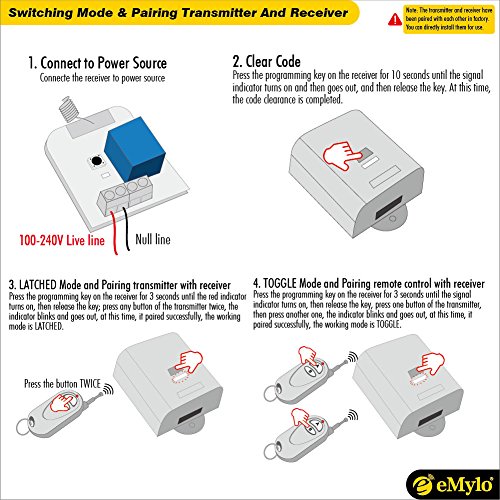 eMylo ac80 – 260 V 2000 W 433 Mhz 1チャネルRFリレーワイヤレスリモートコントロールライトスイッチ送信機と受信機