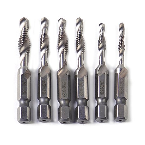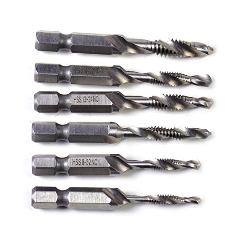 6本 HSS 1/4 " 六角シャンクコンビネーション SAEドリルタップビット バリ取り カウンターシンクセット 3.5-6.35mm