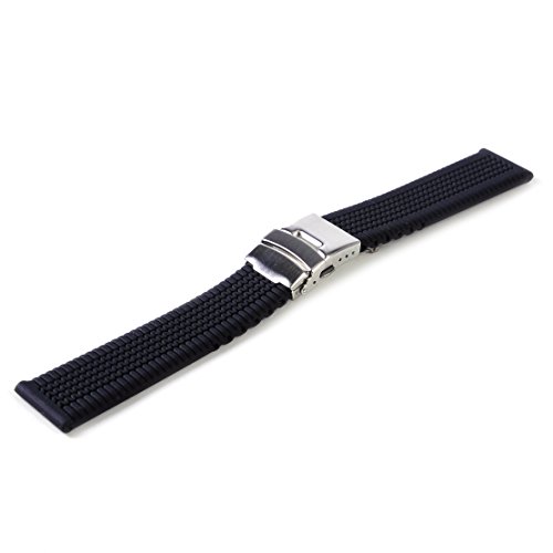メン ブラック 防水シリコーン ストラップウォッチ 時計バンド デプロイ クラスプバックル 24mm