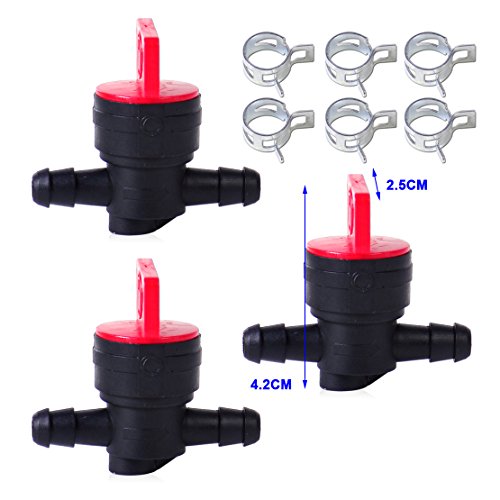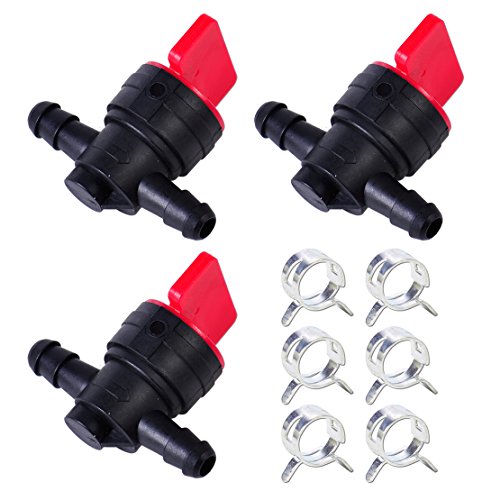 3本入り 1/4" インライン燃料ガス 断つ シャットオフ バルブペットコック ブリッグス&ストラットン+6本 クランプ
