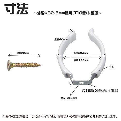 スリムランプ ホルダー 蛍光灯 Φ32.5mm管用 T10管用 バネ鋼板 亜鉛メッキ加工 ゴム 柱 壁 天井 取付用 部品