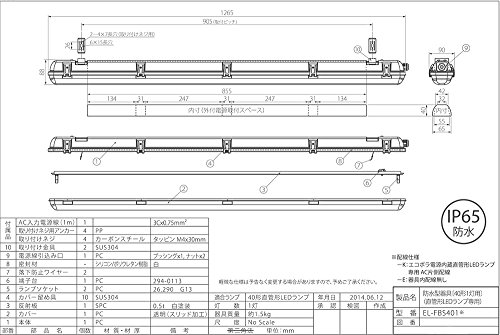 - 型式:EL-FBS401K(片側配線) 寸法:1265×90×88(mm) 1.5kg
