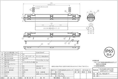 - 型式:EL-FBS201K(片側配線) 寸法:655×90×88(mm) 0.9kg