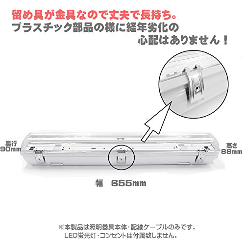 大好評!防水性に大変優れた照明器具です。 付属品で電源線(1m)同梱なので届き次第工事に着工可能。 屋外はもちろん屋内可・軽量。取扱説明書も同封しております。 ※LED蛍光灯は別売です。 ガーデニング 駐輪場 駐車場 庭 ベランダ 防犯灯 勝手口 工場 作業場 等で ご使用されてるとお声を多数頂いております。 某有名メーカーの仕様と比べた上で、当店で購入を決められるかた多数! 品質・販売実績・保証の充実さでは他店に負けない自信が御座います。 入荷時に弊社にて全て点灯チェックを済ましております。 点検後に出荷をするので安心してお買い求め頂けます。 他ご希望の商品が御座いましたらお問合せお待ちしております。