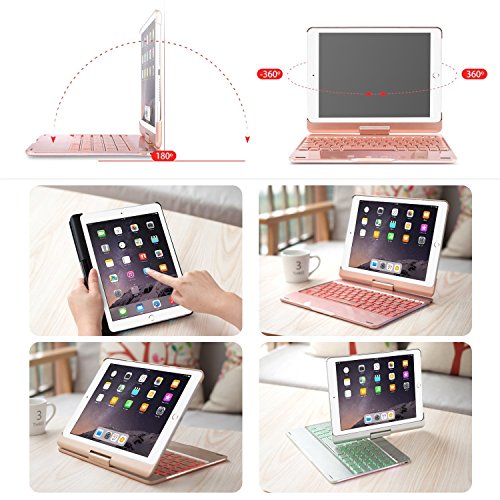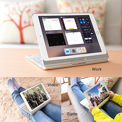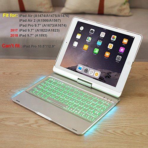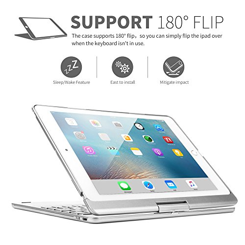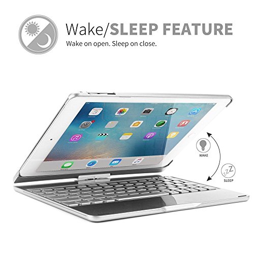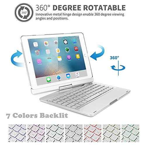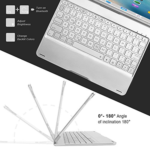 10.5 インチ用 360度回転式 キーボード ケース、elecfanJ バックライト 7色変換 スタンド機能付き アルミ製 傷つけ防止 A1701とA1709