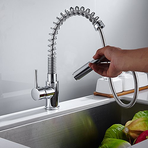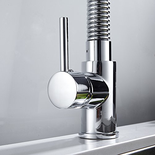 - 使いやすさをアップ:向きが自由自在なキッチン混合栓、バネ仕様の吐水管はあらゆる方向に曲げられ、シンクエリアを簡単に掃除でき、シンクのすみずみまできれいに洗い流せます。