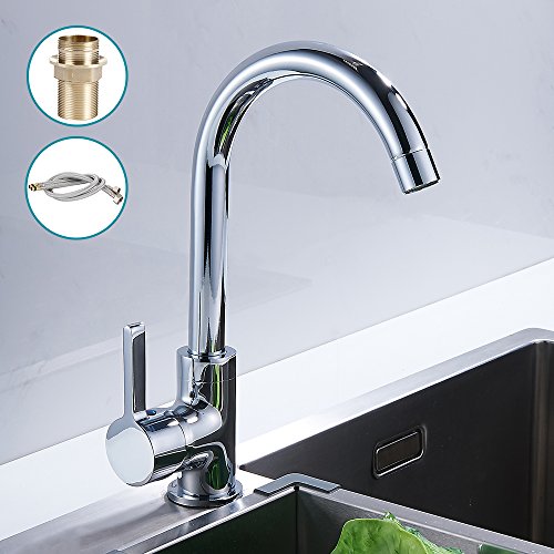 キッチン蛇口 キッチン水栓 洗面蛇口 シングルレバー 混合水栓 台所 厨房 キッチン 洗面所 360度自由回転ノズル スワン型 ホース付き