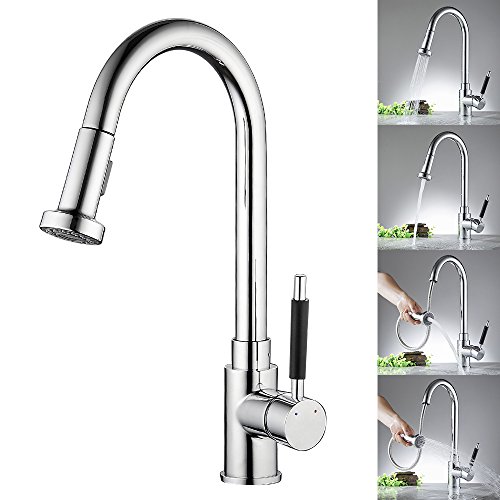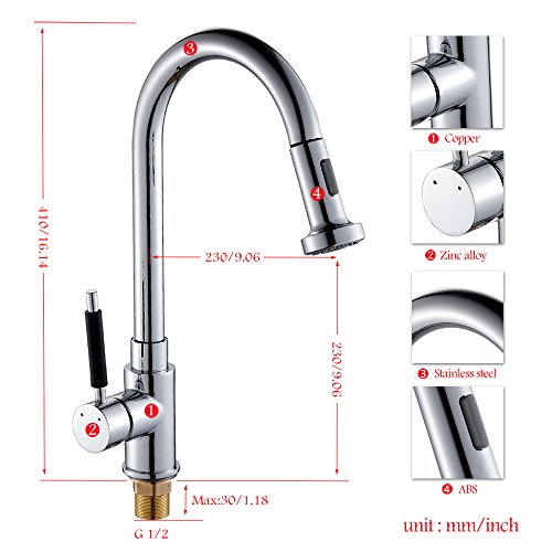 - ホースが引き出し式であり、吐水角度が自由自在。シンクや洗面台の隅々まできれいに洗えて、キッチンシンクの掃除をもっとしやすいです。適合場所:キッチンや洗面所、浴室に設置することができます。