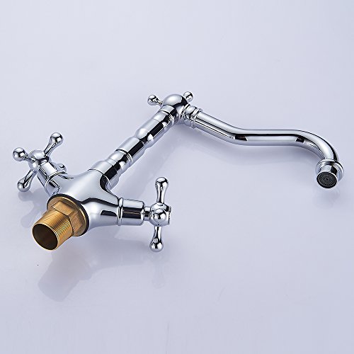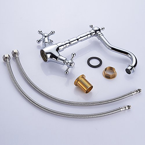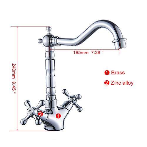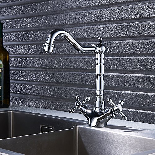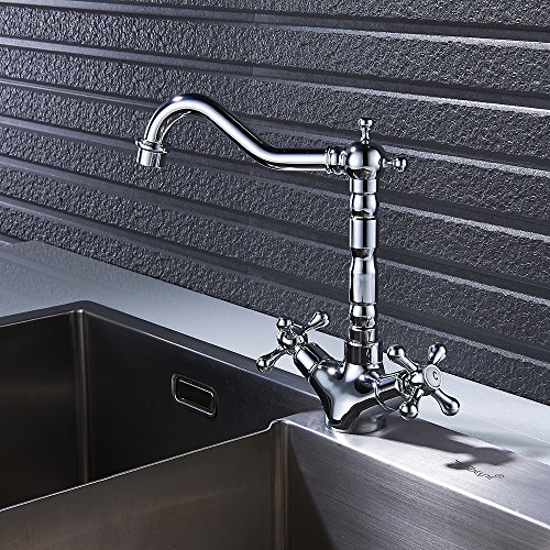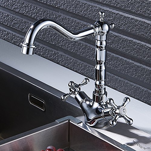 キッチン蛇口 キッチン水栓 キッチン用混合栓 ダブルハンドル クラシック 真鍮 台付 蛇口 水道 取り付けホース付き オシャレ 2年品質保証
