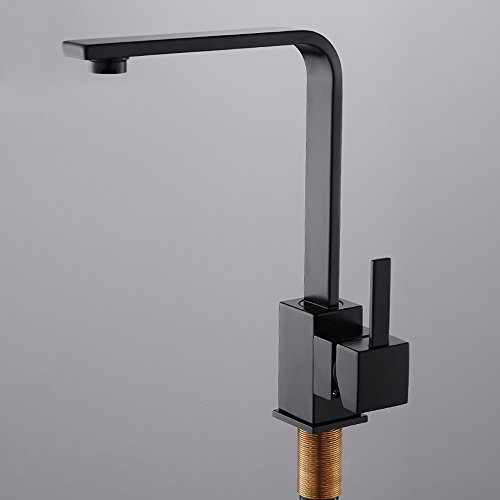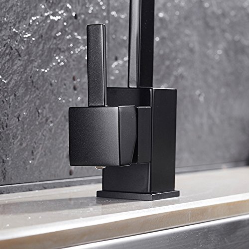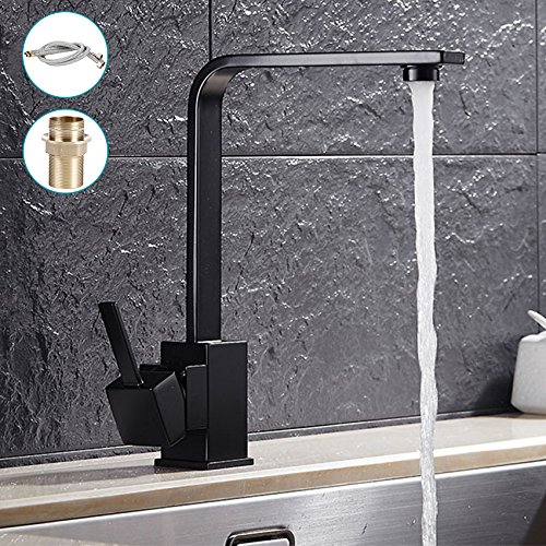 キッチン蛇口 キッチン用水栓 混合水栓 洗面蛇口 L字型 360°回転 おしゃれ シングルレバー 洗面台 水道 ホース付き 黒