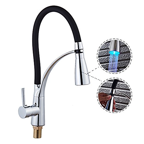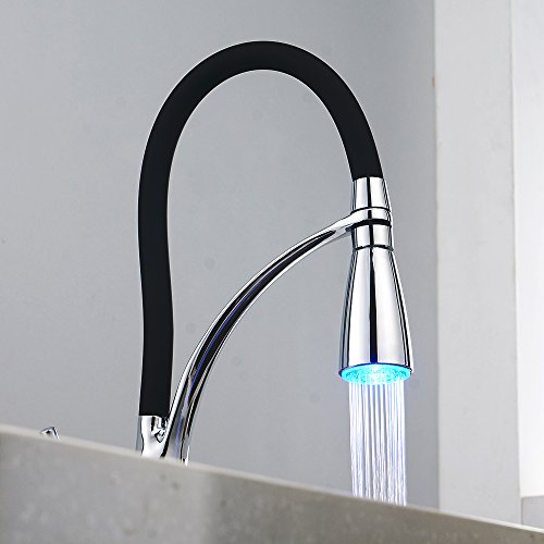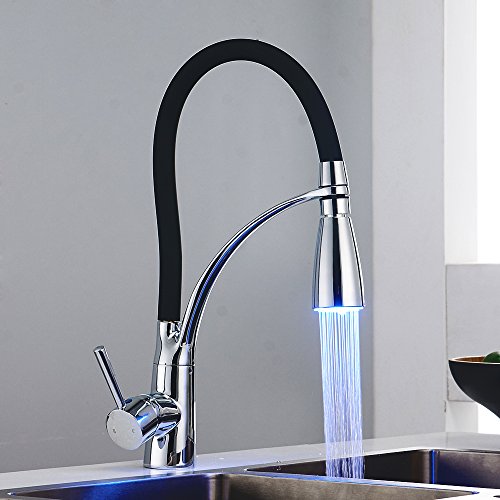 - 使いやすさをアップ:向きが自由自在なキッチン混合栓、バネ仕様の吐水管はあらゆる方向に曲げられ、シンクエリアを簡単に掃除でき、シンクのすみずみまできれいに洗い流せます。LEDで楽しさをアップ