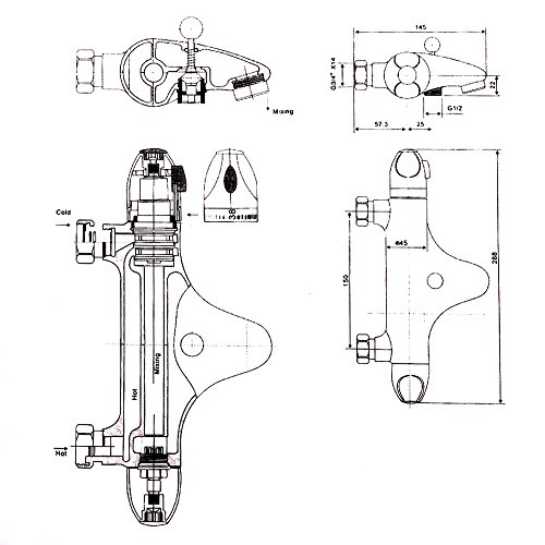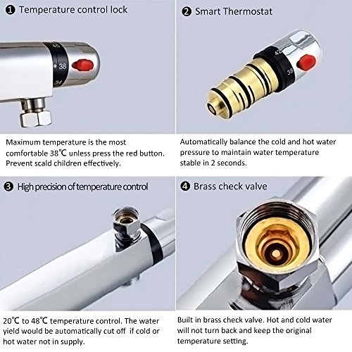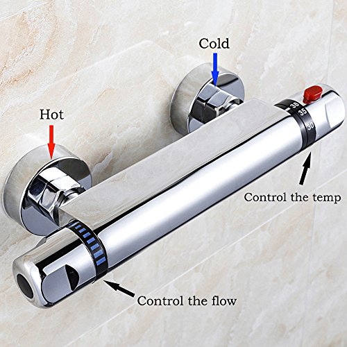 サーモスタットシャワー混合栓 壁付き 浴室用 混合水栓 壁付きサーモスタット混合栓 水栓 蛇口 定温設定可能