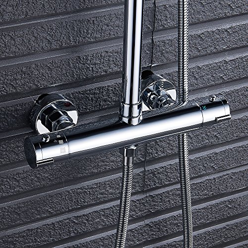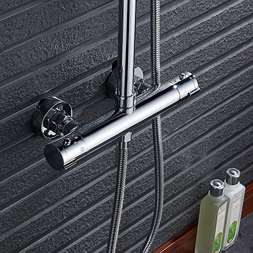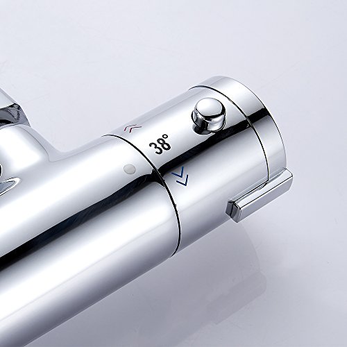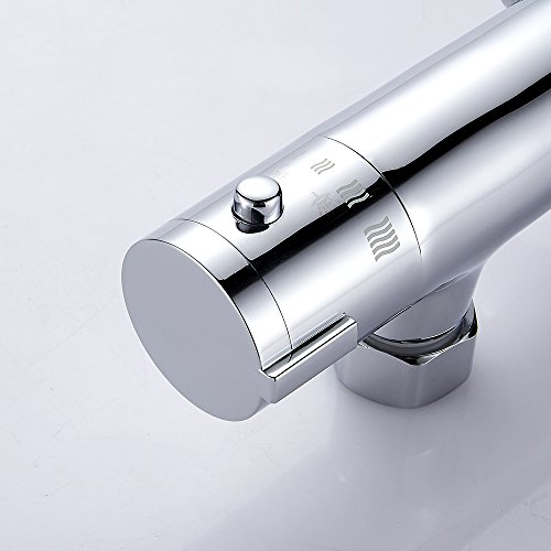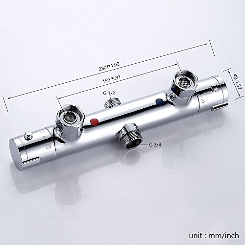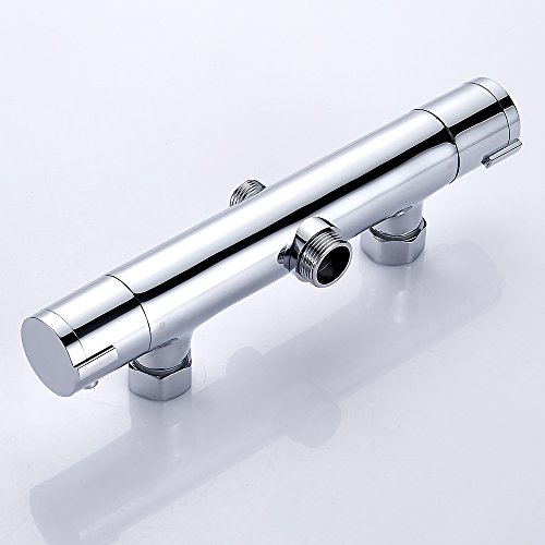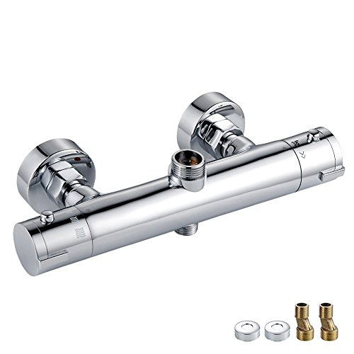 サーモスタットシャワー混合栓 浴室水栓 サーモスタット混合栓 2ハンドル 一時止水あり 上下吐水 シャワー ラウンド バー ミキサー バルブ タップ クロム 浴室 ツイン アウトレット 2年保証