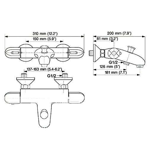 サーモスタットシャワー混合栓 壁付き バス用混合栓 バス用水栓金具 浴室用 混合水栓 壁付きサーモスタット混合栓 水栓 寒冷地向け