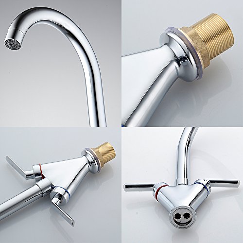 - オシャレ:アンティーク調の気品とクロス2ハンドルのデザインがオシャレで古風な風格がとても素敵な洗面用混合水栓です。