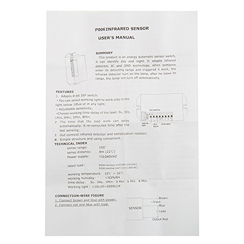 elfishjp センサー スイッチ 赤外線センサースイッチ 最大 800W 屋外/屋内セキュリティ自動 PIRモーションセンサースイッチ 街路灯 自動 制御 光 ライト 昼 夜 検知 コントロール