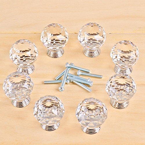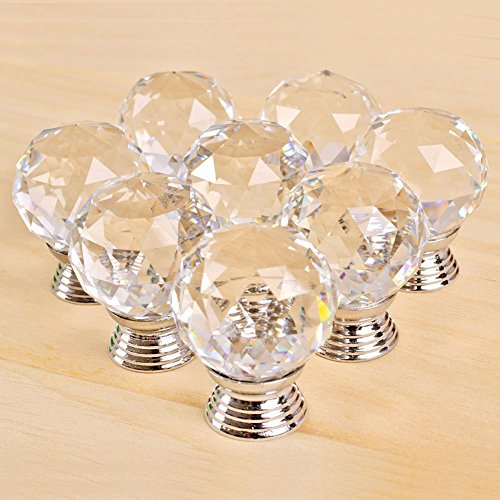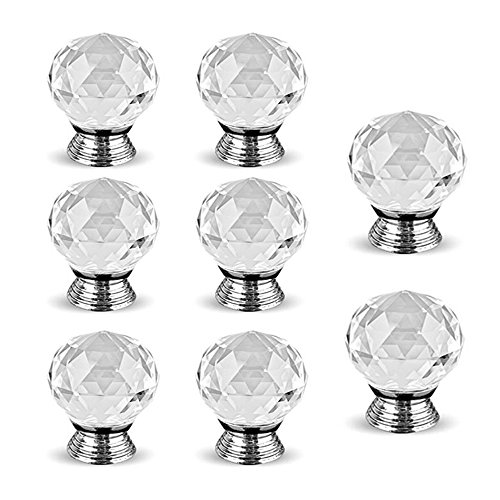 elfishjp 引き出しノブ 取手 ドア取って 引き出しつまみ クリスタル ガラス ドアノブ 透明 ハンドル 水晶 ハンドル ドアハンドル タンス キッチンキャビネット 食器棚 引き出し 装飾 8個セット
