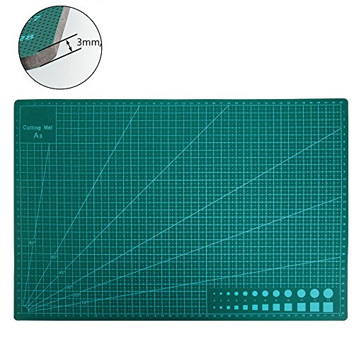 - カッターマットは30cmX22cmのA3サイズ。厚さはたった3mmですが、傷がつきにくく快適な使い心地。自分回復能力が強い!カッターを使う作業には絶対に欠かせない物です。