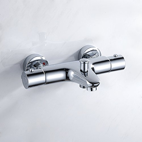 サーモスタットシャワー混合水栓 バス水栓 水栓 壁付き 浴室用混合栓 壁付サーモスタット水栓 水漏れなし 高品質シャワー 水栓 下出水 2年保証