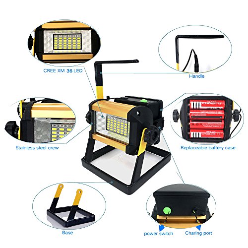 elfishjp led 投光器 充電式 50W 36個LED投光器 バッテリー内蔵 スマホに充電する可能 ポータブル投光器 電池交換対応式 360角度調整 作業用照明 充電式LED作業灯 夜釣り キャンプ 夜間作業などで大活躍