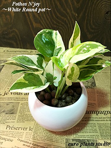 ポトス・エンジョイ / ホワイトラウンドポット / Pothos N'joy / White Monotone Pot / イテリア観葉植物 / ハイドロカルチャーアレンジ