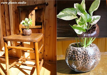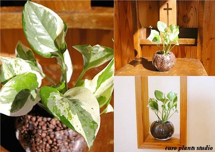 ポトス・エンジョイ / モダンラウンドグラス / Pothos N'joy / Modern Round Glass / イテリア観葉植物 / ハイドロカルチャーアレンジ