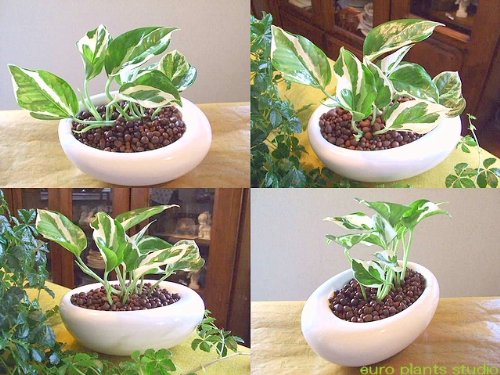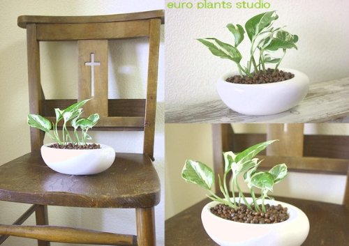 ポトス・エンジョイ / ホワイトイリプスポット / Pothos N'joy / White Ellipse Pot / イテリア観葉植物 / ハイドロカルチャーアレンジ
