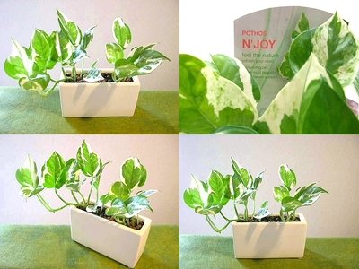 ポトス・エンジョイ / ホワイトワイドポット / Pothos N'joy / White Wide Pot / イテリア観葉植物 / ハイドロカルチャーアレンジ