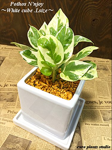 ポトス・エンジョイ / ホワイトキューブポット / Pothos N'joy / White Cube Pot / イテリア観葉植物/鉢植え
