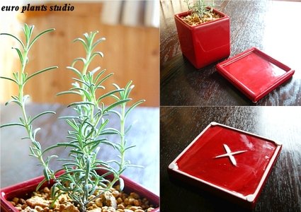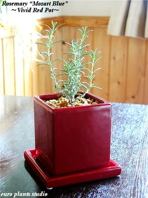ローズマリー“モーツァルトブルー”/ ヴィヴィッド レッドポット / Rosemary‘Mozart Blue / Vivid Red Pot / インテリアハーブ / 鉢植え