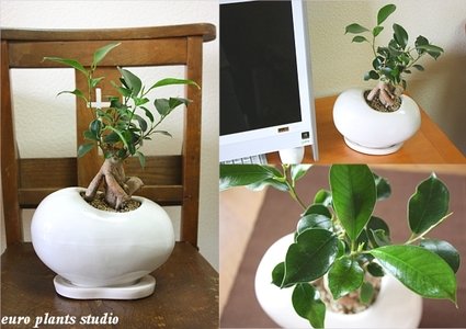 精霊の宿る木★ガジュマル / ホワイトエッグポット / Ficus Retusa / White Egg Pot / インテリア観葉植物 / 鉢植え