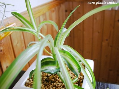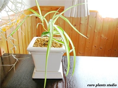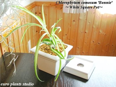 オリヅルラン・ボニー / ホワイトスクエアポット / Chlorophytum Comosum Bonnie / White Square / インテリア観葉植物 / 鉢植え