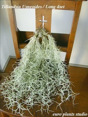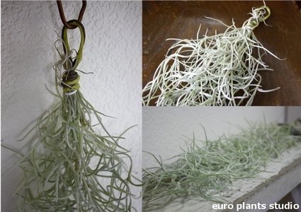 - エアープランツの大きさ:長さ40~45 (cm) ※ウスネオイデスは必要な湿度を保つため紐のような植物個体が互いに絡み合い生育しておりますので、長さに多少ばらつきがある点は何卒ご了承ください。