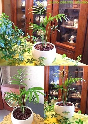 Collinia elegans/White Round Pot/美艶テーブルヤシ/ホワイトラウンドポット/インテリア観葉植物/ハイドロカルチャー