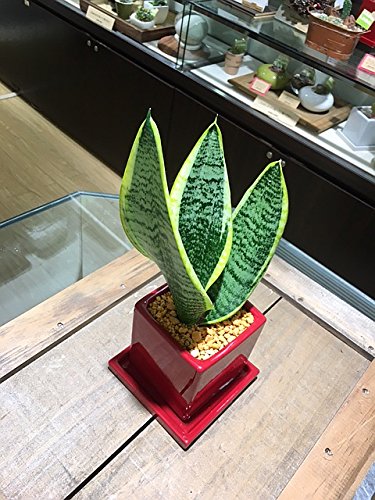サンセベリア・ローレンティー・コンパクタ サンスベリア 観葉植物 鉢植え 陶器 インテリア ヴィヴィッドレッドポット