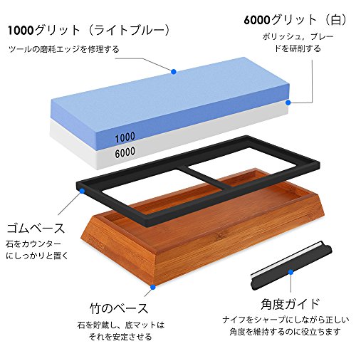 - グリット1000&6000シャープネスストーンの組み合わせ - 2in1(1000/6000グリット)は、粗いシャープネスと細かいシャープネスに適しています。 (7インチ×2.3インチ×1.1インチ)
