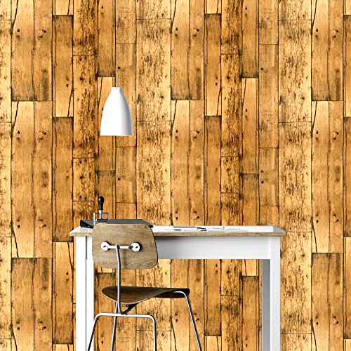 fancy-fix 壁紙シール DIY 黄木目柄 リフォーム ウォールステッカー 防水 45CM*10M 貼ってはがせるシール のり付き壁紙 おしゃれ