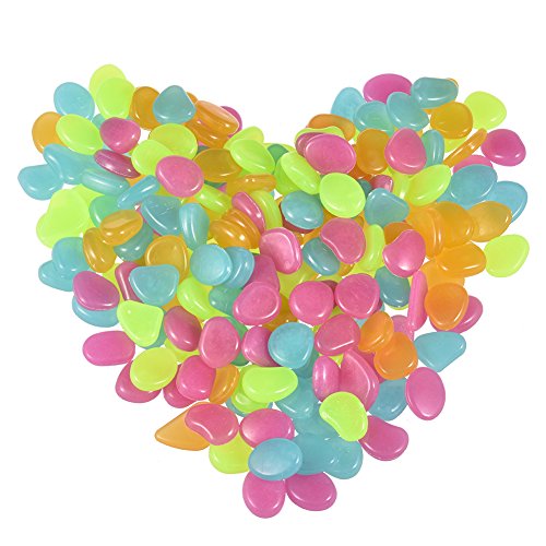 200個 飾り石 夜光石 水槽飾り 石 舗装 庭づくり アクアリウム 水槽 鑑賞用 アクアリウム用具 レイアウト用品 グローストン 夜間蛍光 水槽用アクセサリー 緑、青い、オレンジ、紫各50個