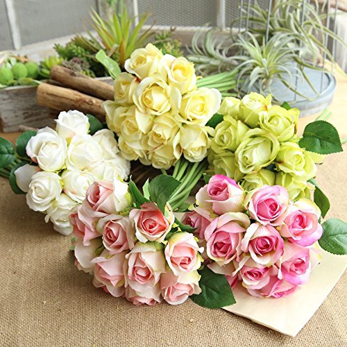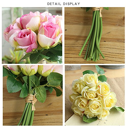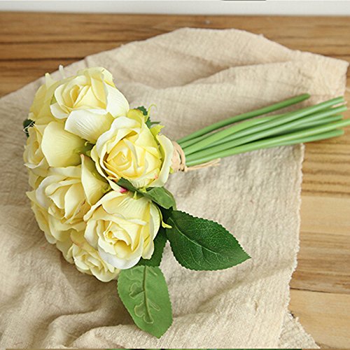 造花 インテリア造花 花束 枯れない花 バラ花束 薔薇造花 11本 上質なチューリップ シルク製 本物そっくり アートフラワー 造花 飾り物 小物 リビング 玄関 ダイニング プレゼント ギフト ローマンチック 結婚式 ホーム 喫茶店 飾りフラワー (イエロー)